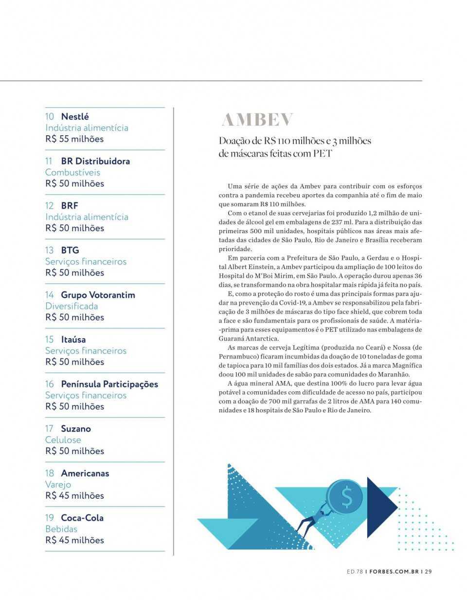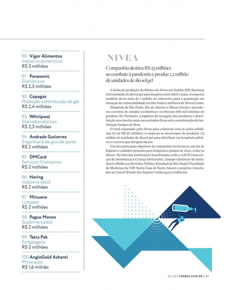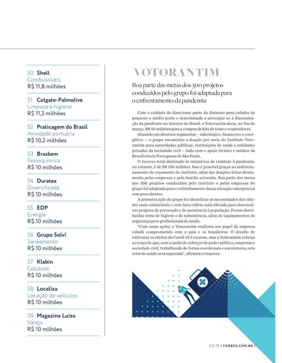Sensibilizada com os impactos sociais ocasionados pelo novo Coronavírus, a Cia. Hering tem criado iniciativas para ações de responsabilidade – como forma de construir uma resposta sistêmica e solidária para a sociedade. Utilizando a sua expertise na produção têxtil e no varejo de vestuário, direcionou parte da sua produção para a doação de uniformes e camisetas a unidades de saúde e de máscaras de proteção à população. Por meio de suas marcas, também foram lançados produtos com significado social, como os da coleção “Camisetas com Amor”, que reverteu 100% do lucro para a compra de ventiladores pulmonares, e, na temática de Dia das Mães, os da coleção “Amor Essencial”, que teve parte do lucro revertido para o projeto Mães de Favela, da CUFA (Central Única de Favelas). No total, são mais de 800 mil itens doados, o que corresponde a um montante de mais de R$ 2 milhões.